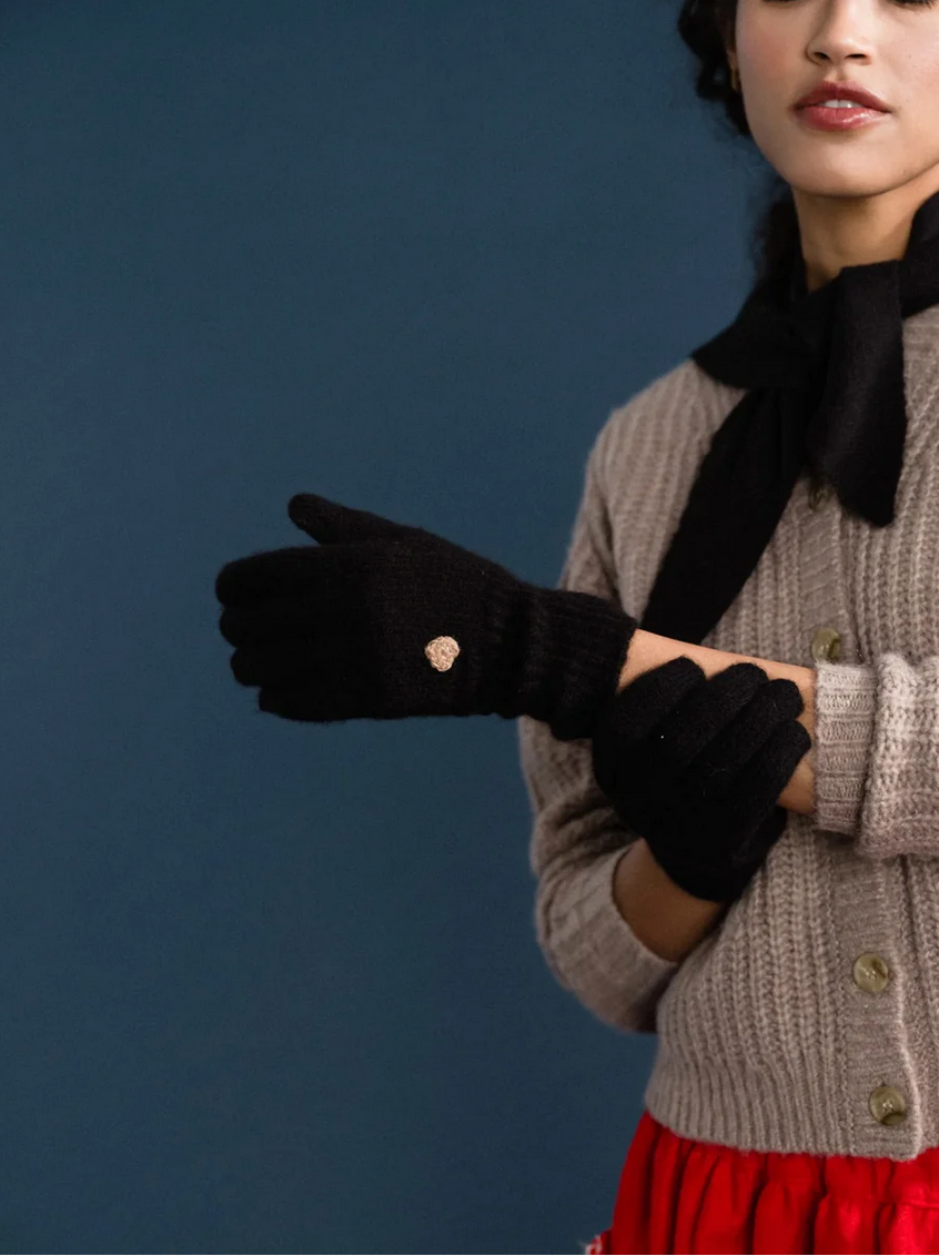 HANSEL FROM BASEL CASHMERE HEART GLOVES, BLACK O/S