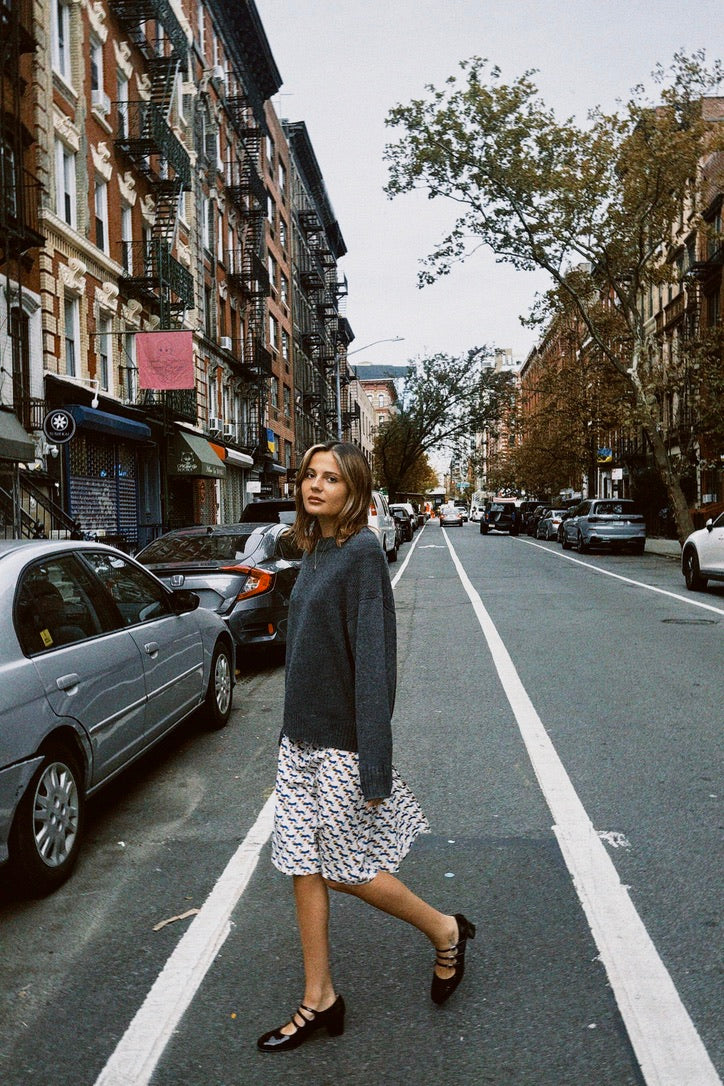 CLOAK & DAGGER MAUDE COTTON CORDUROY + NAVY RICKRACK SKIRT