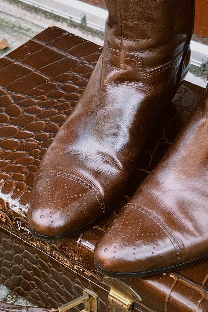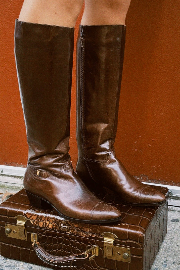 VINTAGE FERRAGAMO BROWN LEATHER BOOTS, 7