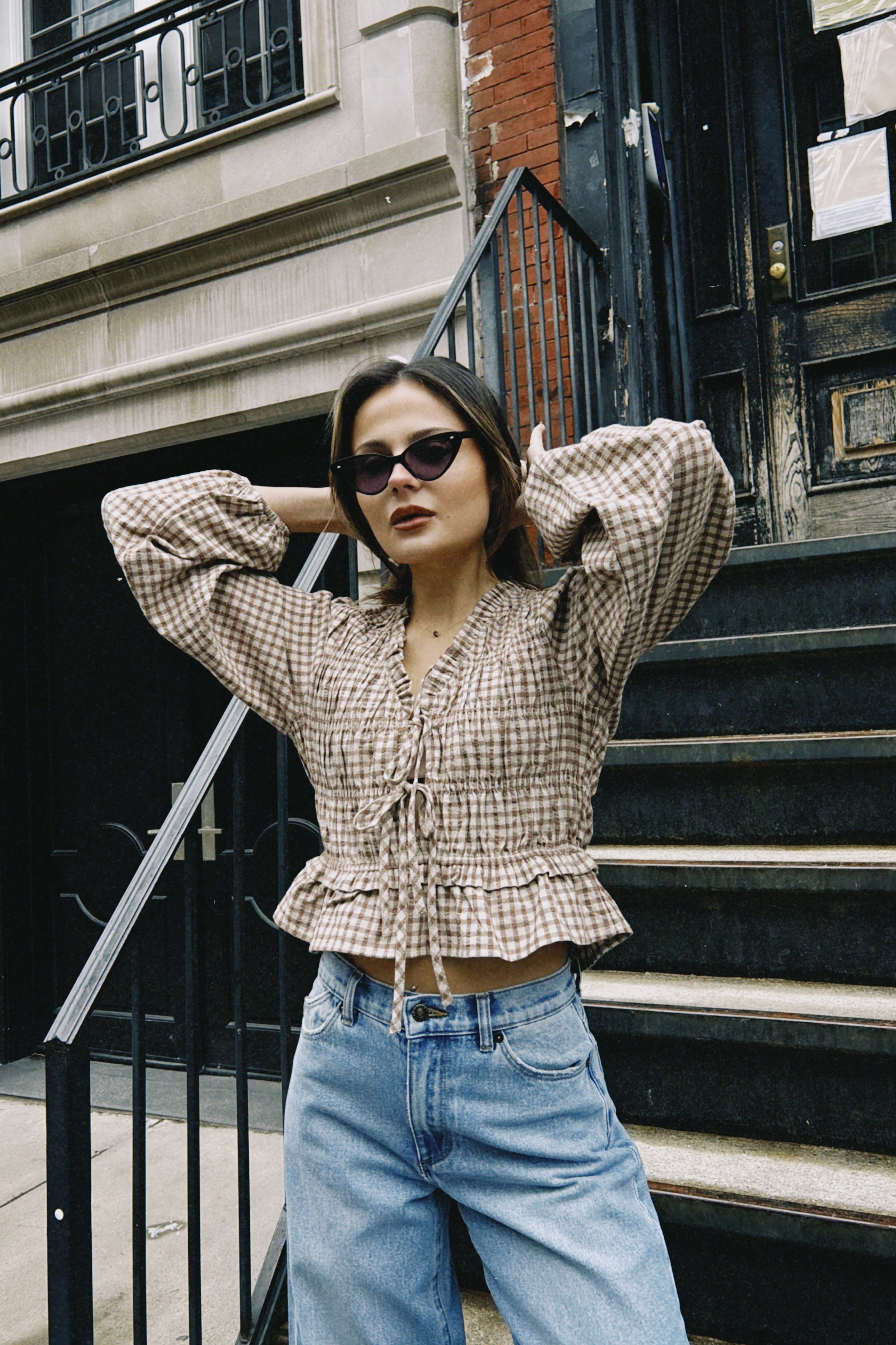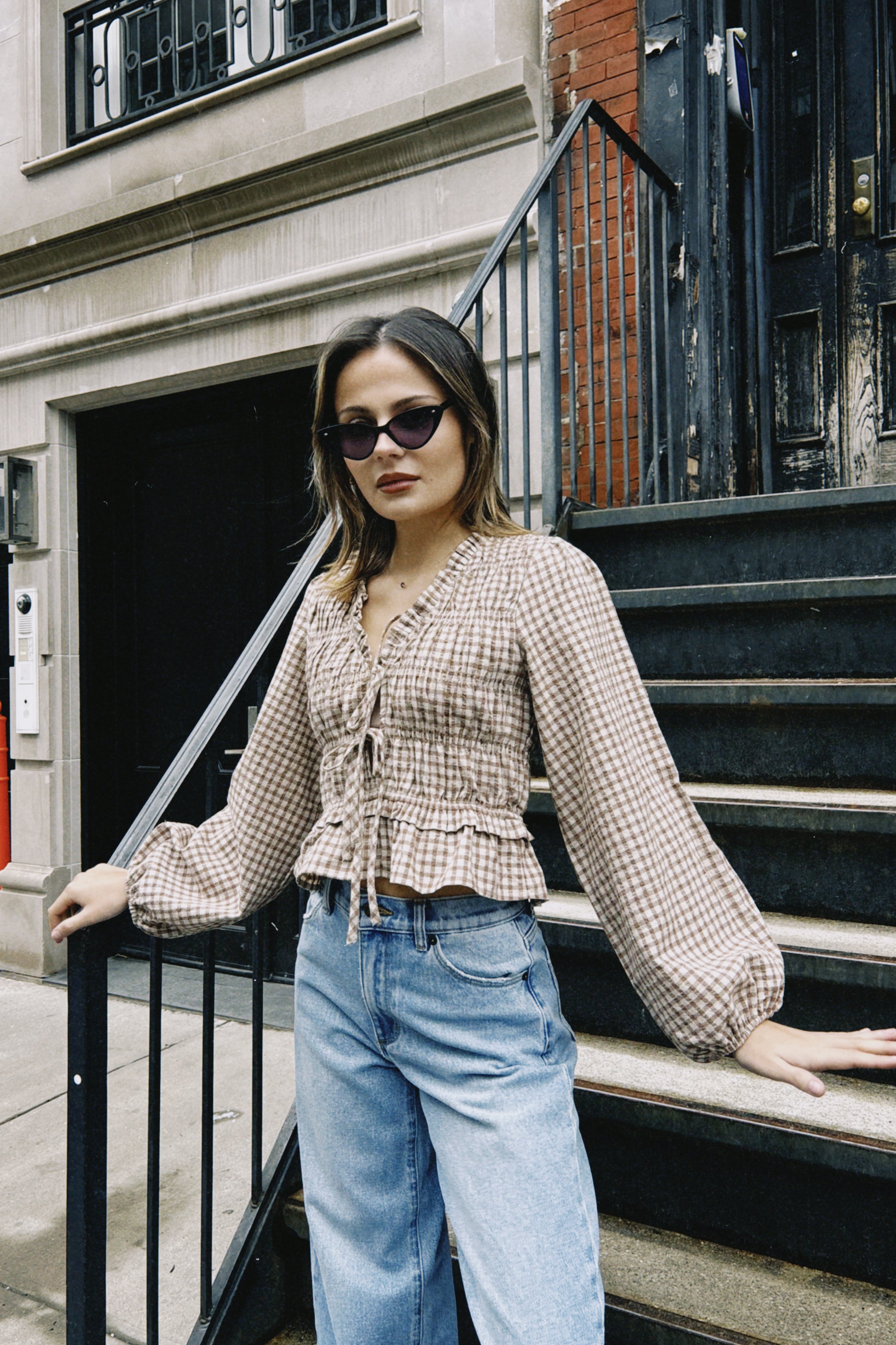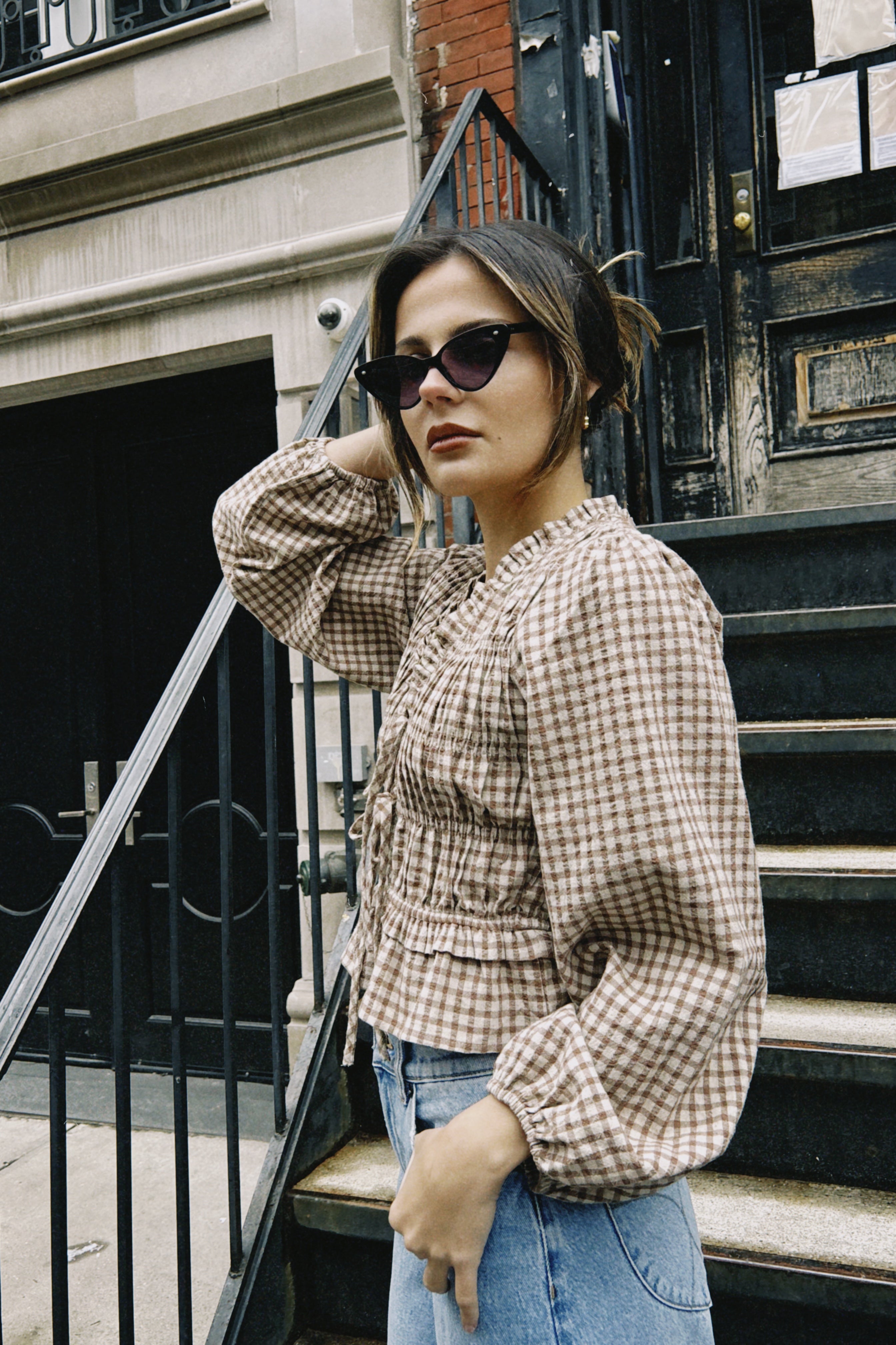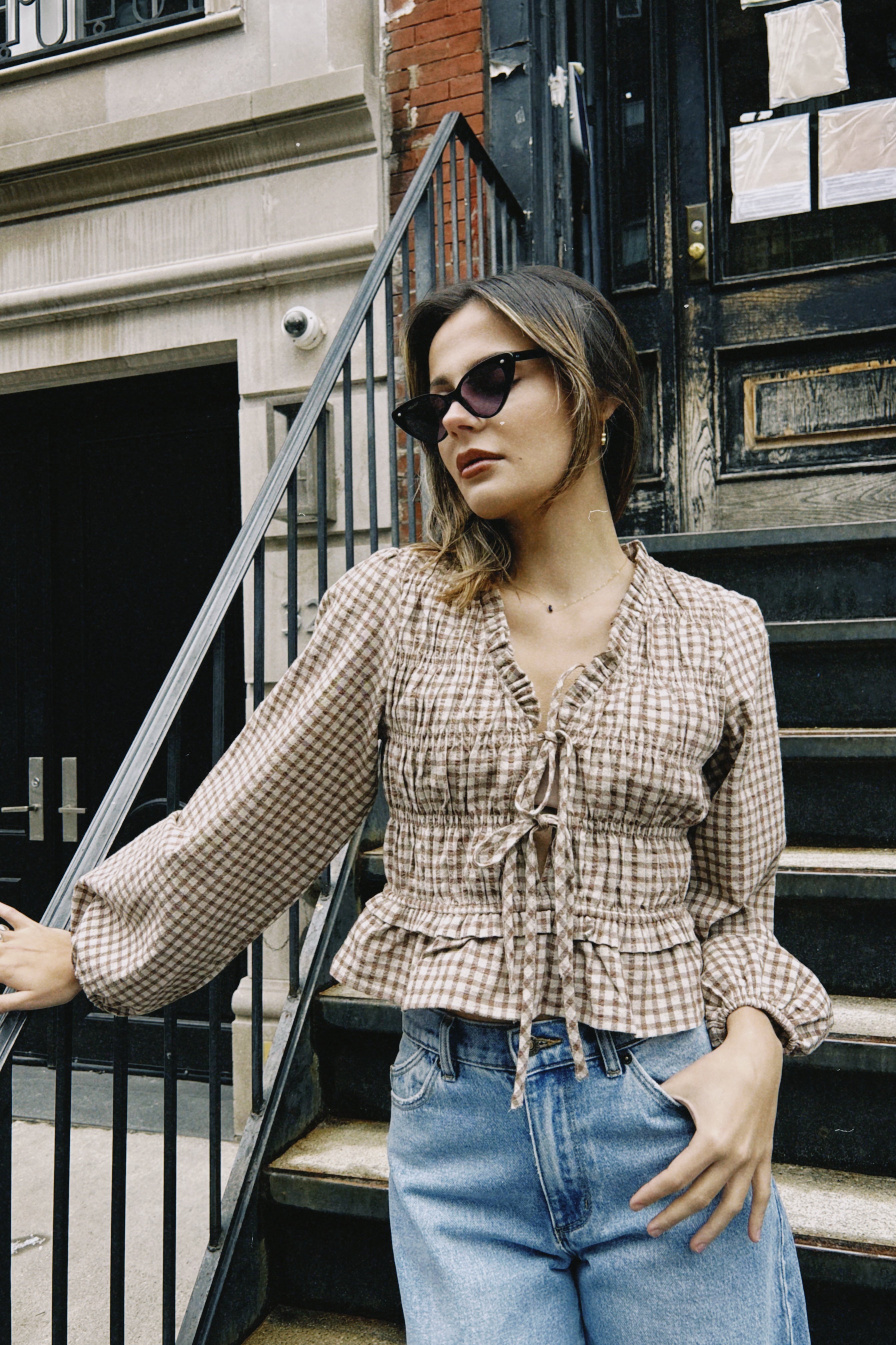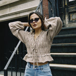 AURORA GINGHAM SMOCKED TOP