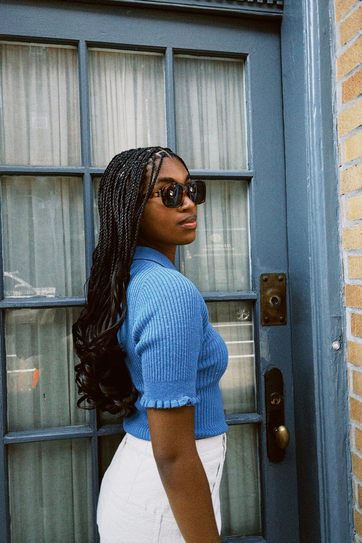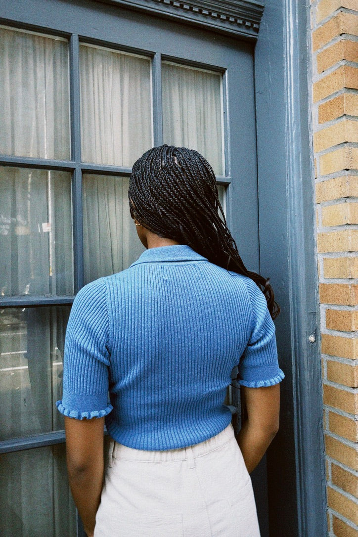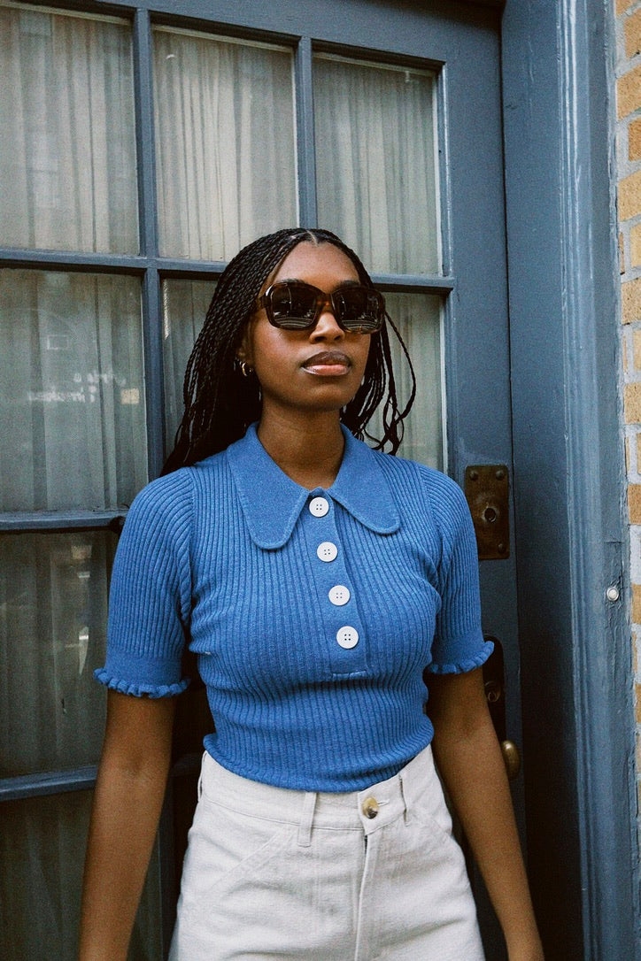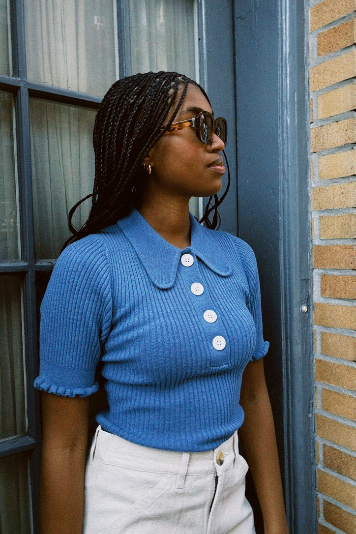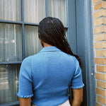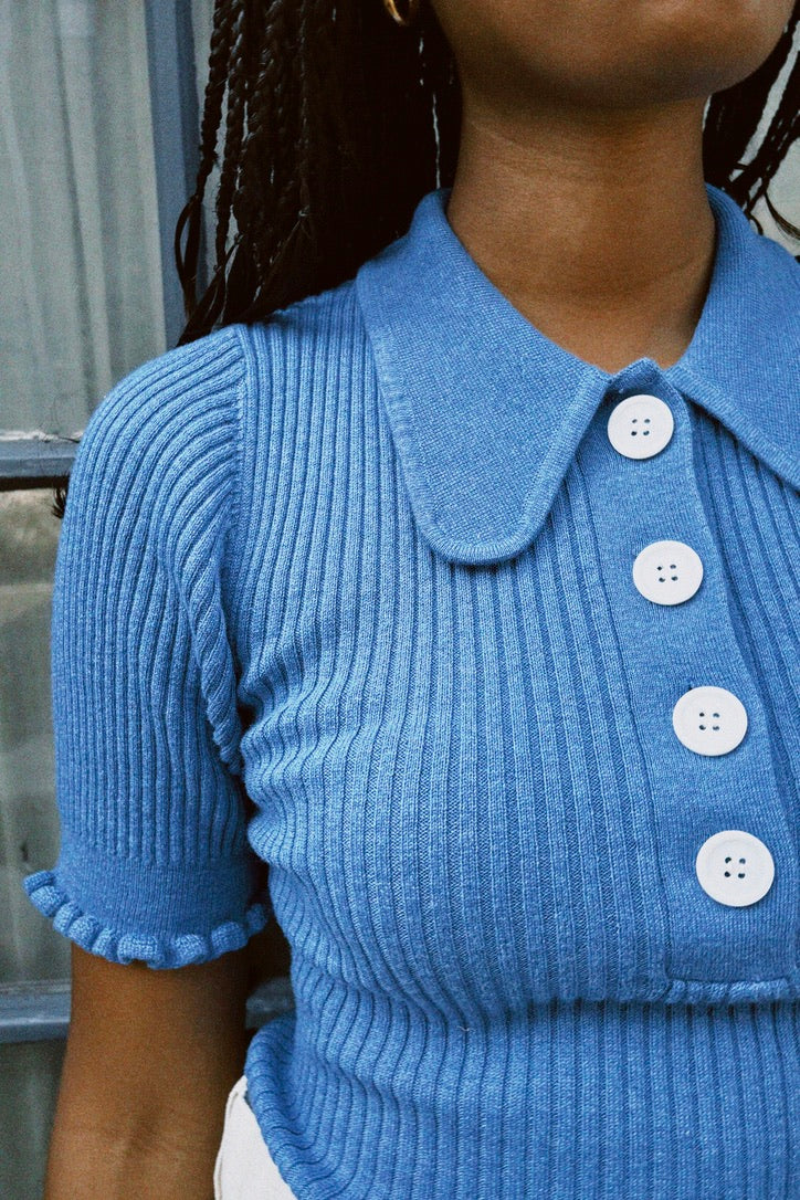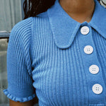 Enter the stratosphere of adorable in a vintage-inspired Peter Pan collar and ruffle edging top. Merino wool is touchable and breathable for all seasons. Pair with skirts or jeans!