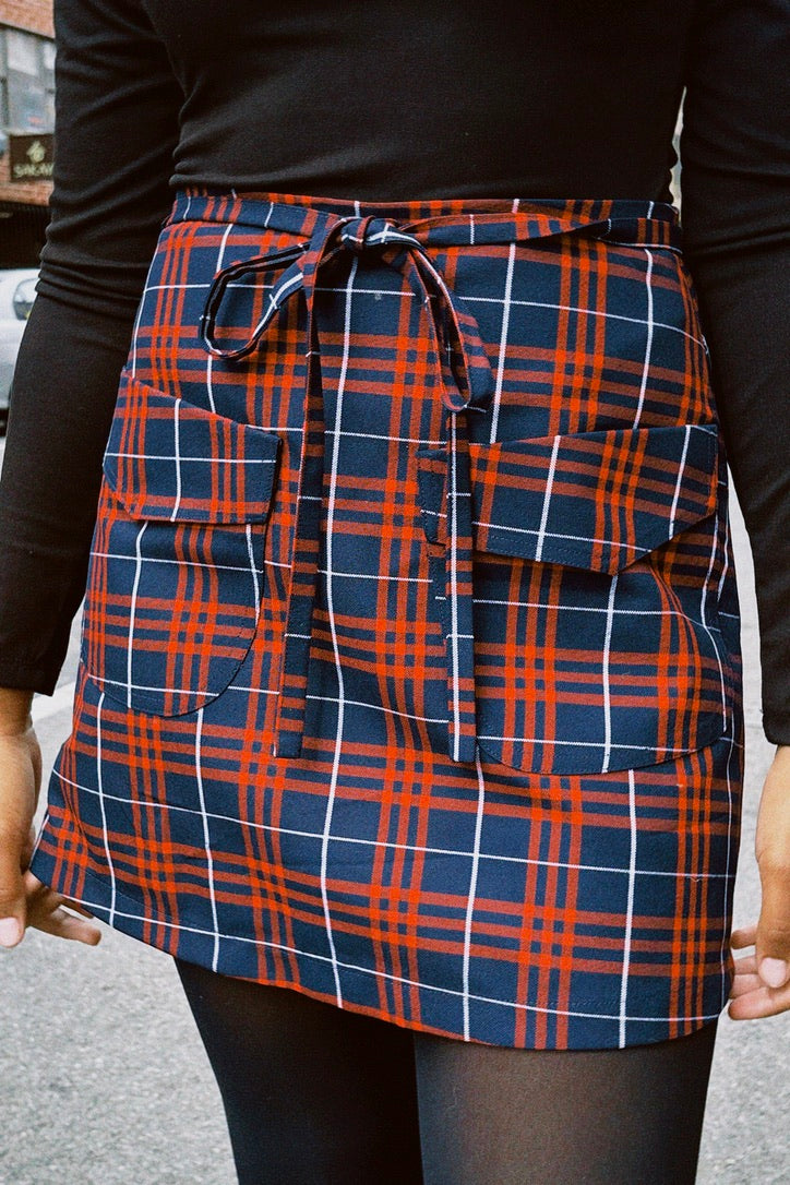 Color: Navy and red large plaid.
