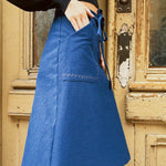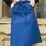 We all know and love our iconic Birkin Mini Skirt, so we made it in a longer length with 70's inspired pockets and out of the most luxe fabrics. You'll love her in every season. There were only a few of these made due to utilizing end-use fabrics, so if you want one in this gorgeous navy cotton corduroy with navy rick rack trim on the pockets, now is your chance!