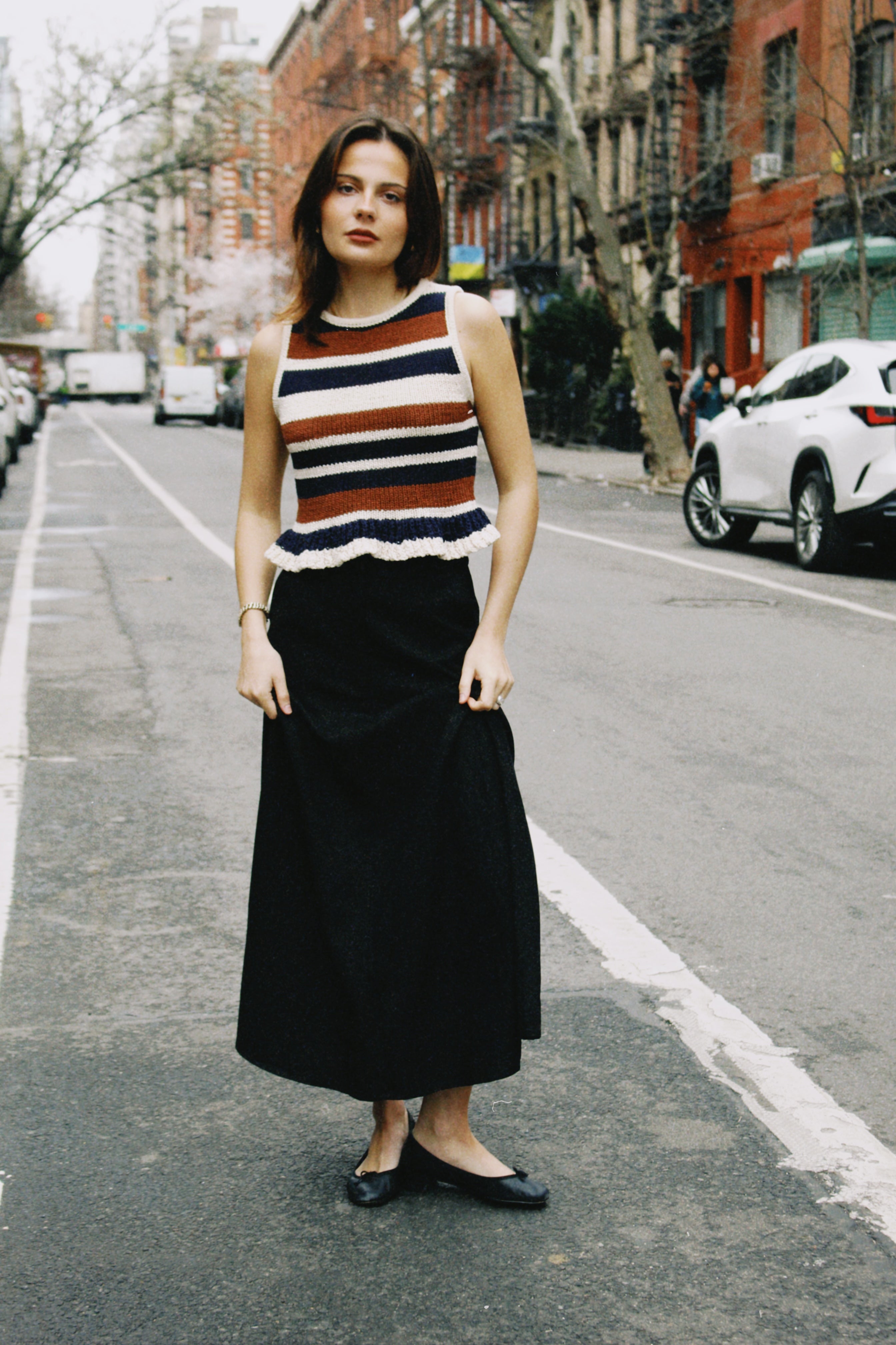 The skirt that does all the work — in the most effortlessly chic midi length. The Corinne is a midi skirt that balances sleek and feminine with timeless ease. The classic black colorway feels endlessly versatile and editorial, while the midi length adds a sophisticated silhouette that transitions seamlessly from day to night. Pair it with a simple fitted tee for a casual daytime look, or elevate it with a tucked-in blouse and heels for something more polished.