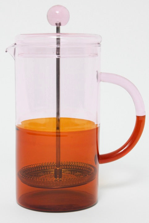 Simply add your ground coffee to the glass jug, top with hot water and sit the lid on top. Do not compress the plunger until your coffee has had enough time to brew, then slowly push it all the way down. Serve + enjoy!