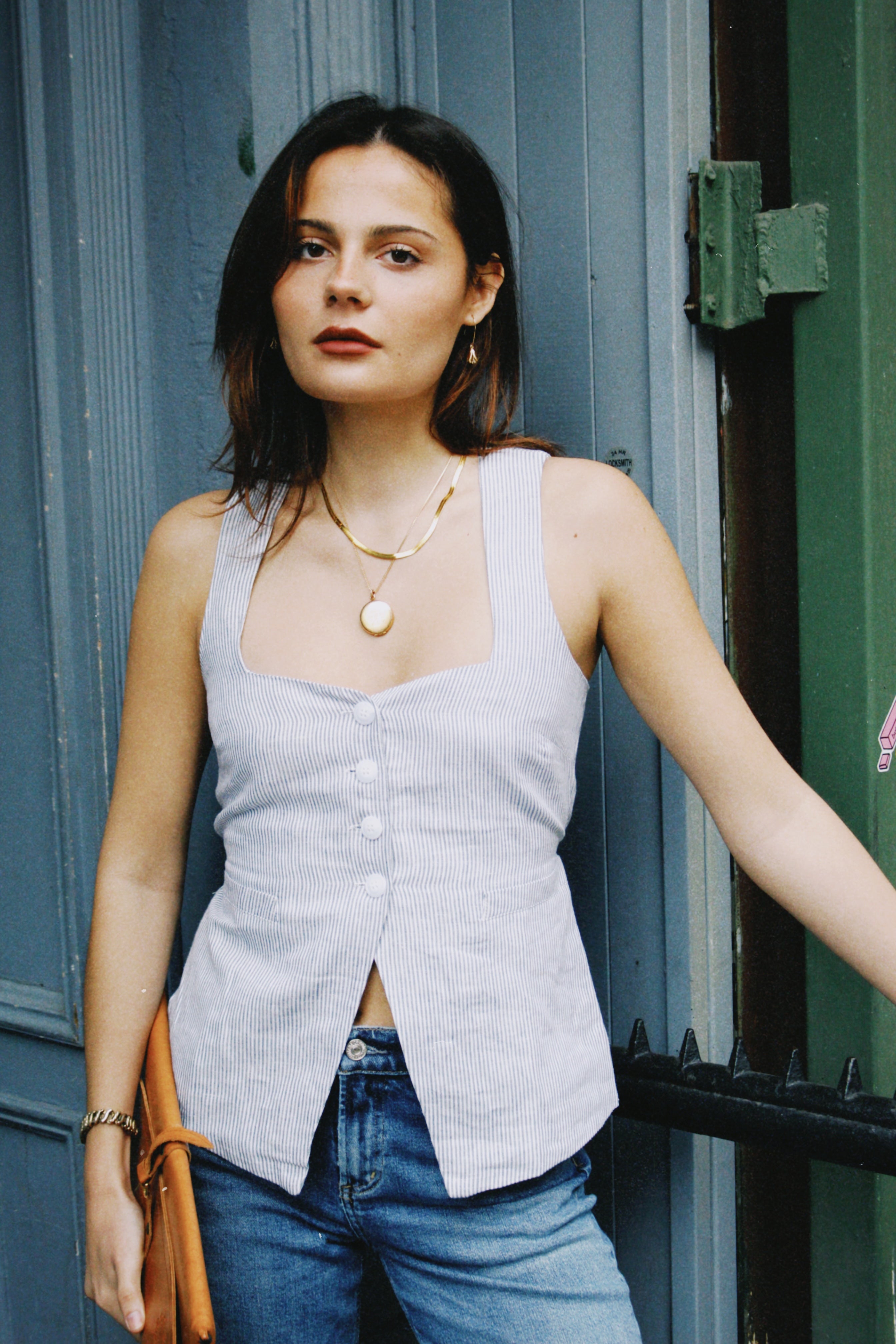 The stripe that does the talking — in the most effortlessly cool vest silhouette. The Frankie is a striped vest top that balances relaxed and refined with a vintage-inspired ease. The soft chambray colorway feels fresh and wearable, while the vest cut adds a laid-back structure that transitions seamlessly from day to night. Pair it with wide-leg trousers for a polished daytime look, or layer it over a long-sleeve tee for something more casual and editorial.