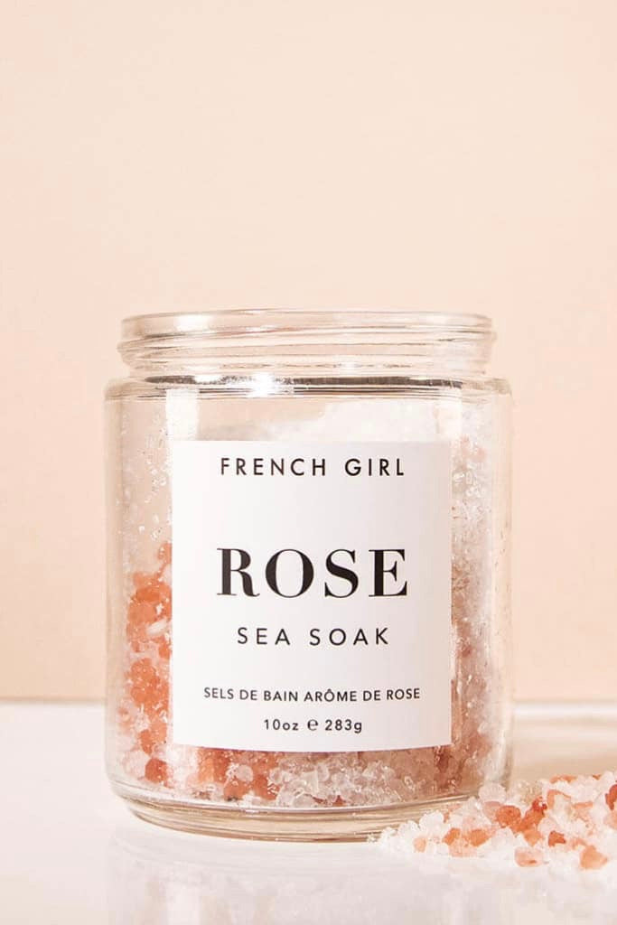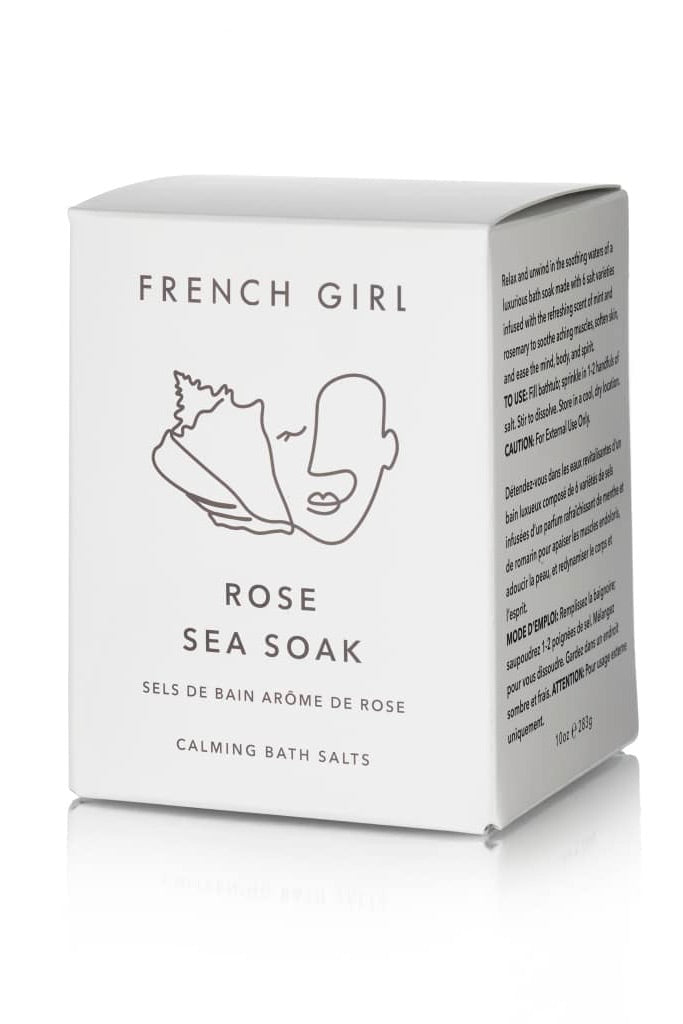 What's Inside: French Girl Calming Rose Bath Salts is made with 6 salt varieties and infused with the delicate scent of rose and ylang, it softens the skin, soothes aching muscles, and eases the mind, body, and spirit.