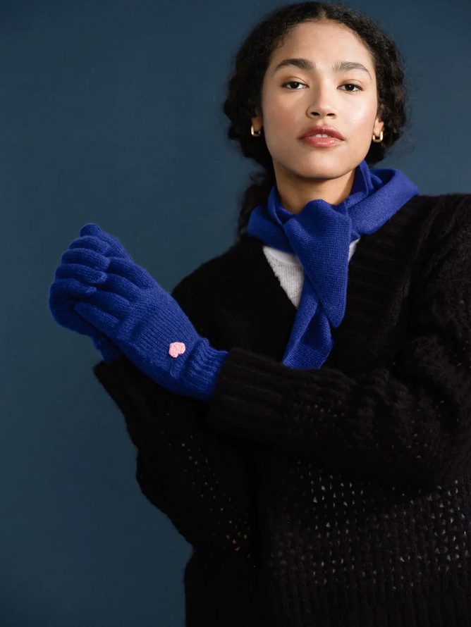 HANSEL FROM BASEL CASHMERE HEART GLOVES, COBALT O/S