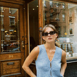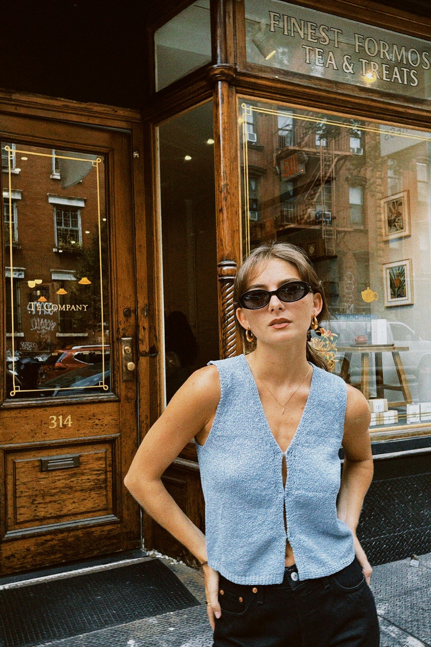 We love a knit top! And this cutie is in the most adorable powder blue color! Features 3 hook & eye closures. Shhh! Also cute worn backwards ;)