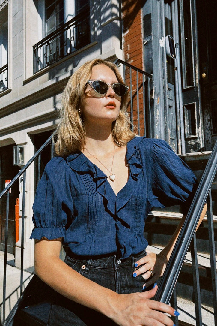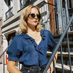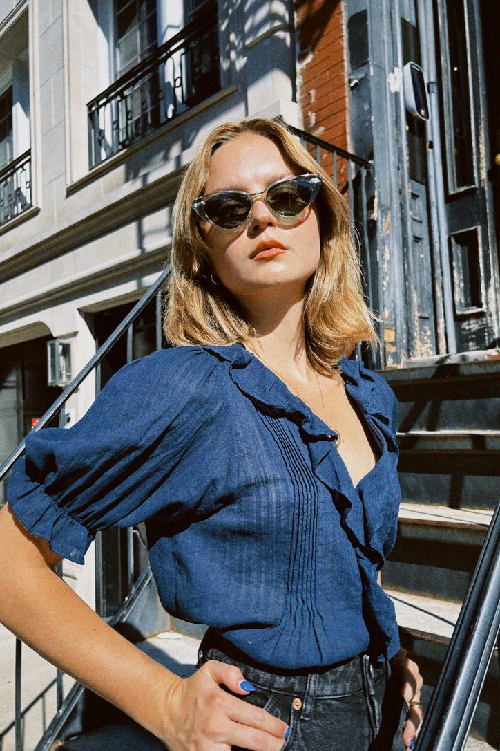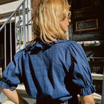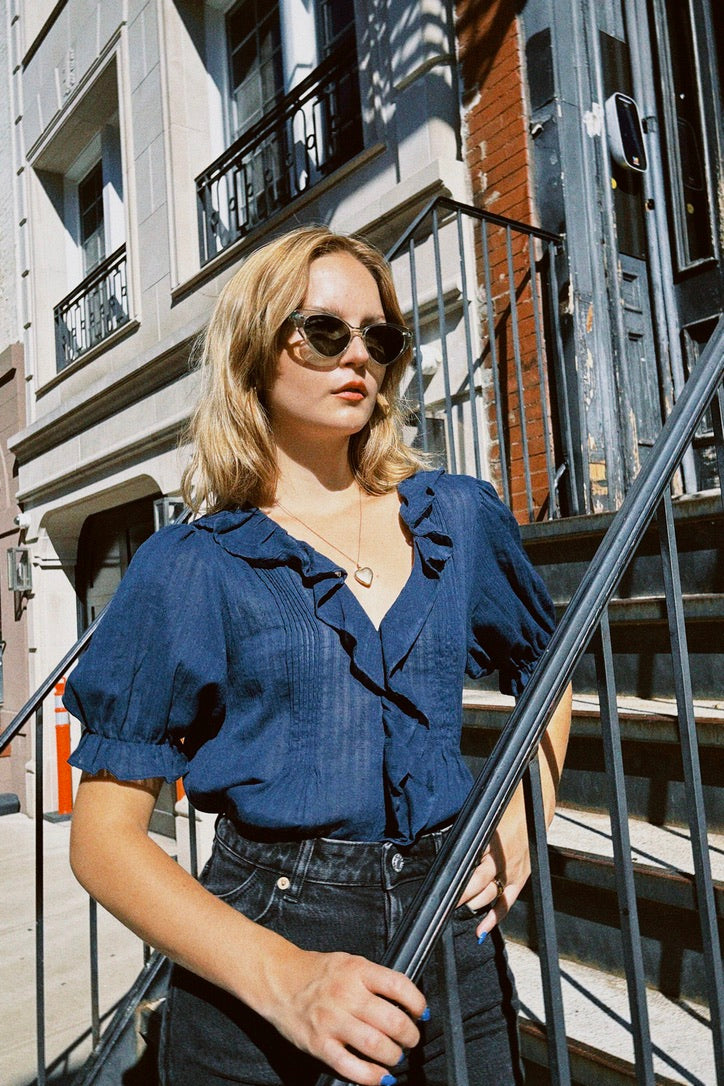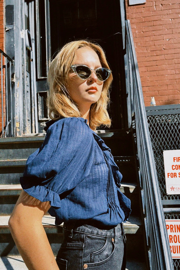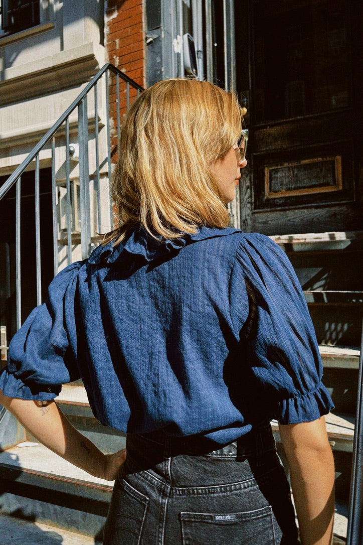 We truly believe there are few things better than a perfect gauzy blouse. This one features a ruffle collar reminiscent of our favorite vintage Edwardian and Victorian blouses. So chic styled with a denim mini skirt, or shorts to dress it down for easy summer days.