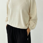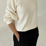 A lightweight layer for shifting seasons. The Pointelle Core Sweatshirt is made from ultra-soft jersey pointelle, offering just the right mix of breathability and warmth. With its relaxed drape and voluminous sleeves, it’s a refined take on cozy.