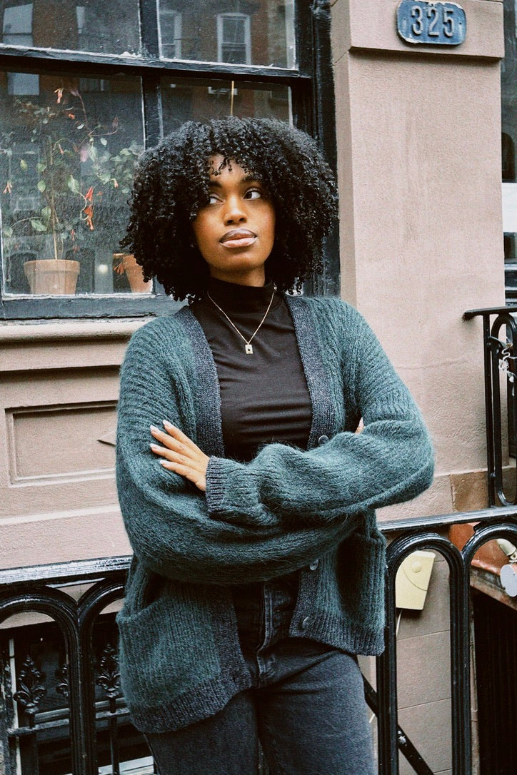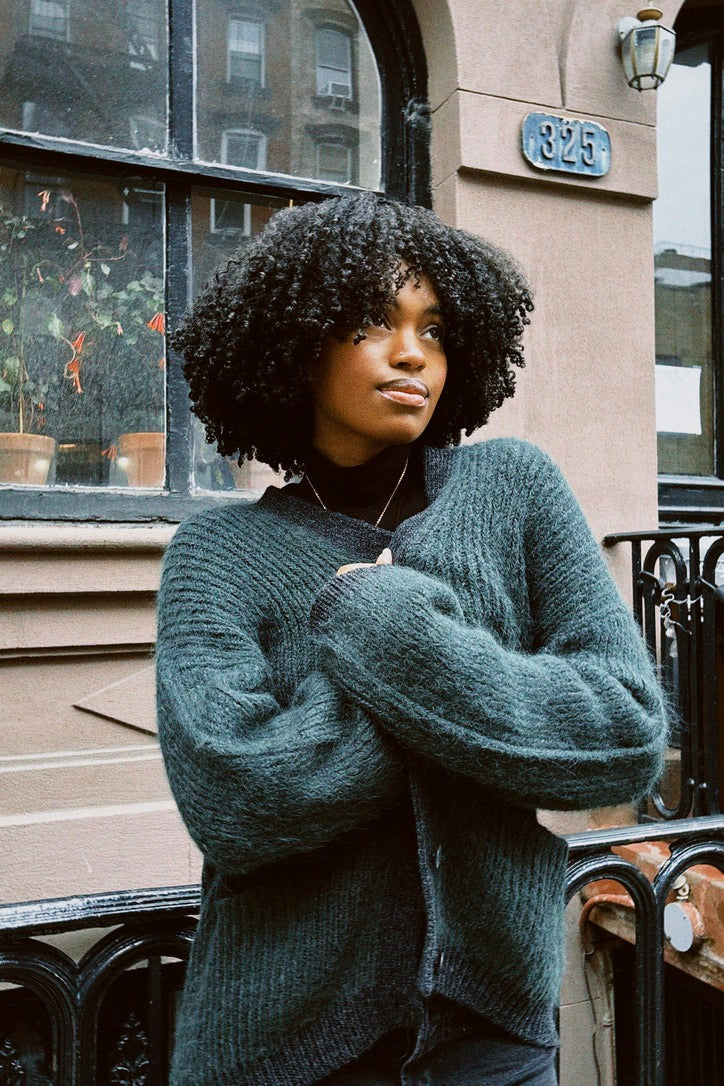 📏 Peyton is wearing size S. This cardigan runs true to size with an oversized fit.