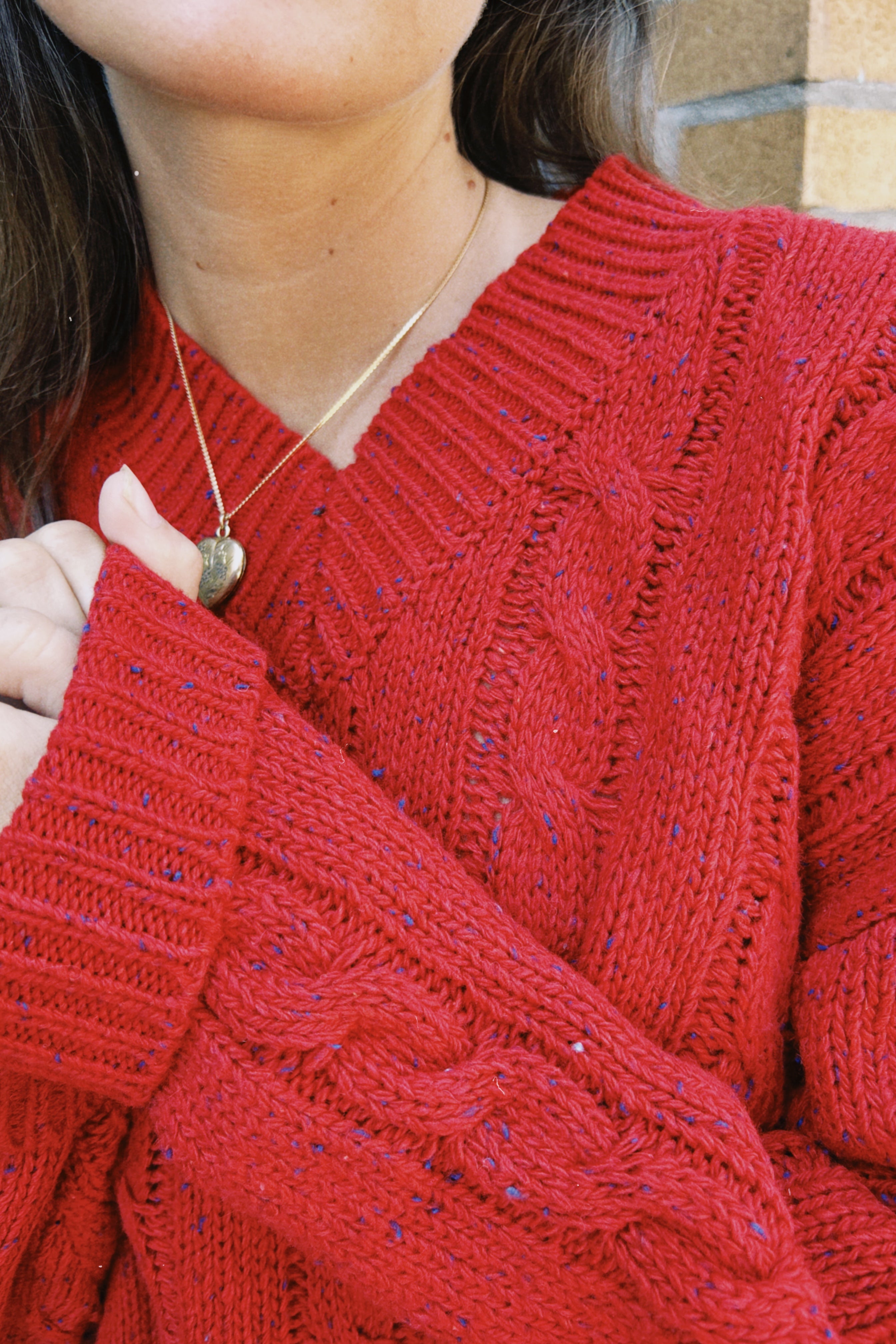 The softest sweater you will find this Fall. Don't miss out on this cozy and thick sweater. With the small details of dark blue mixed into the sweater, it will makes the perfect color palette for the cold weather coming up.