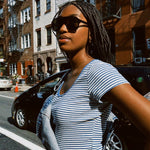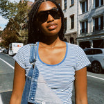 A scoop-neck 90's baby tee in a CloakBabe favorite hemp-cotton rib that starts soft and gets softer with every wear.