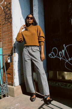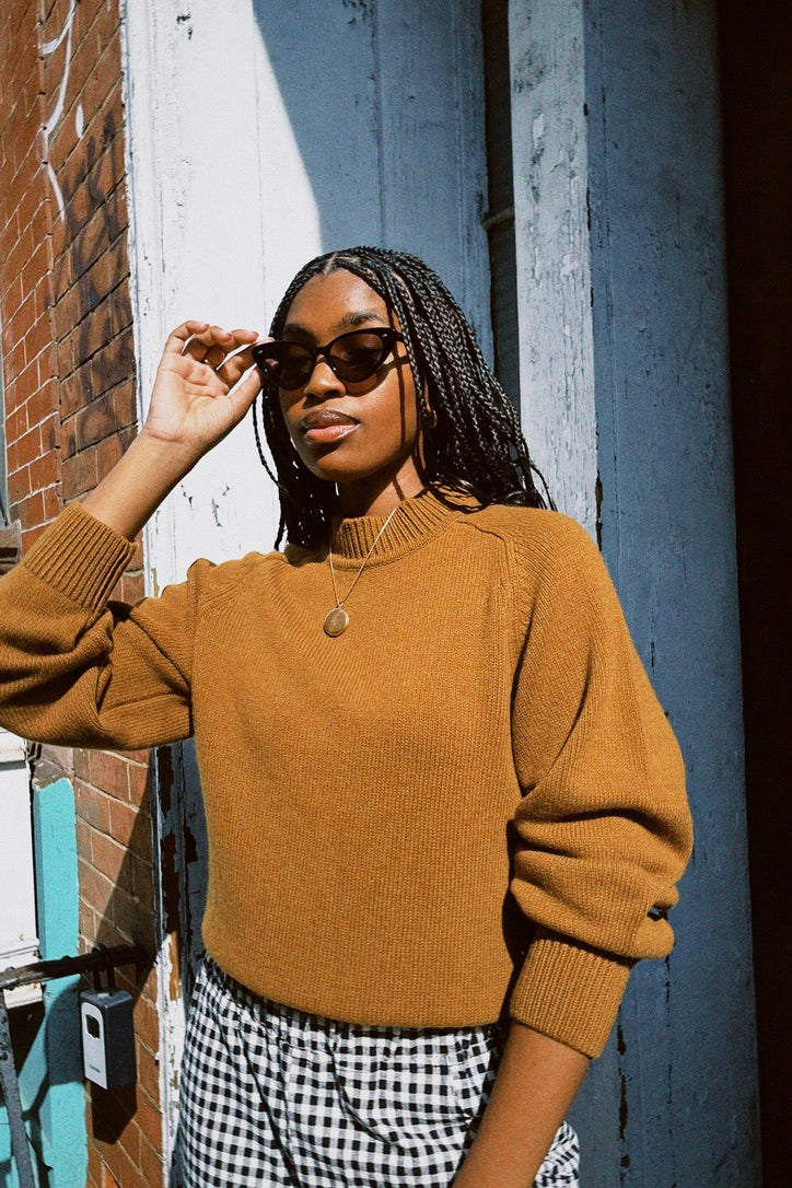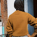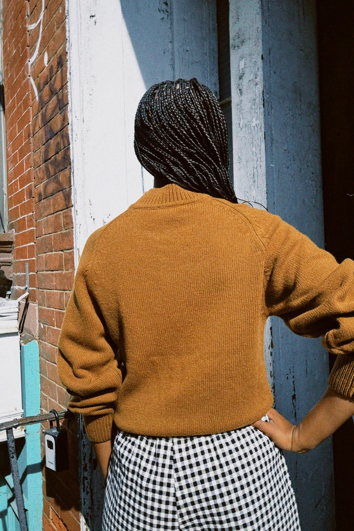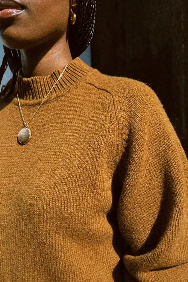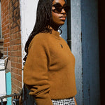 Your new favorite fall sweater. Featuring a high collar, saddle armholes and long balloon sleeves.