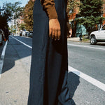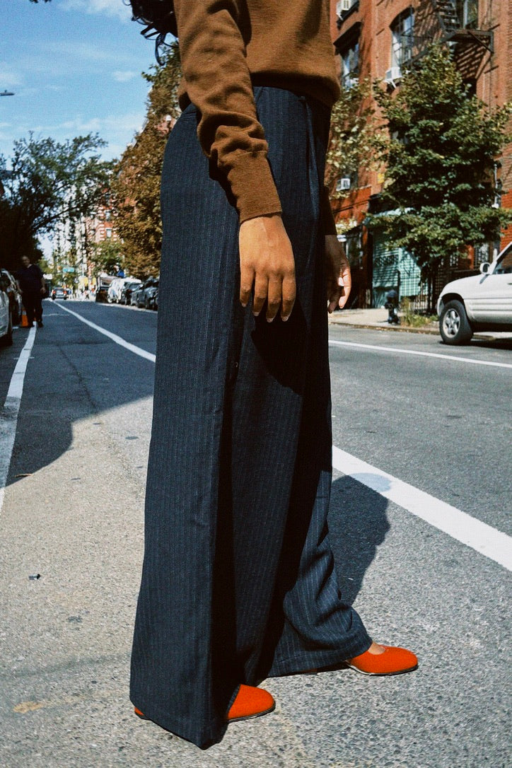 THE TROUSER YOU'VE BEEN SEARCHING FOR. Pleated wide-leg in a chambray-effect wool twill with tennis stripes, woven in Italy. A chic staple that you will have for years to come.