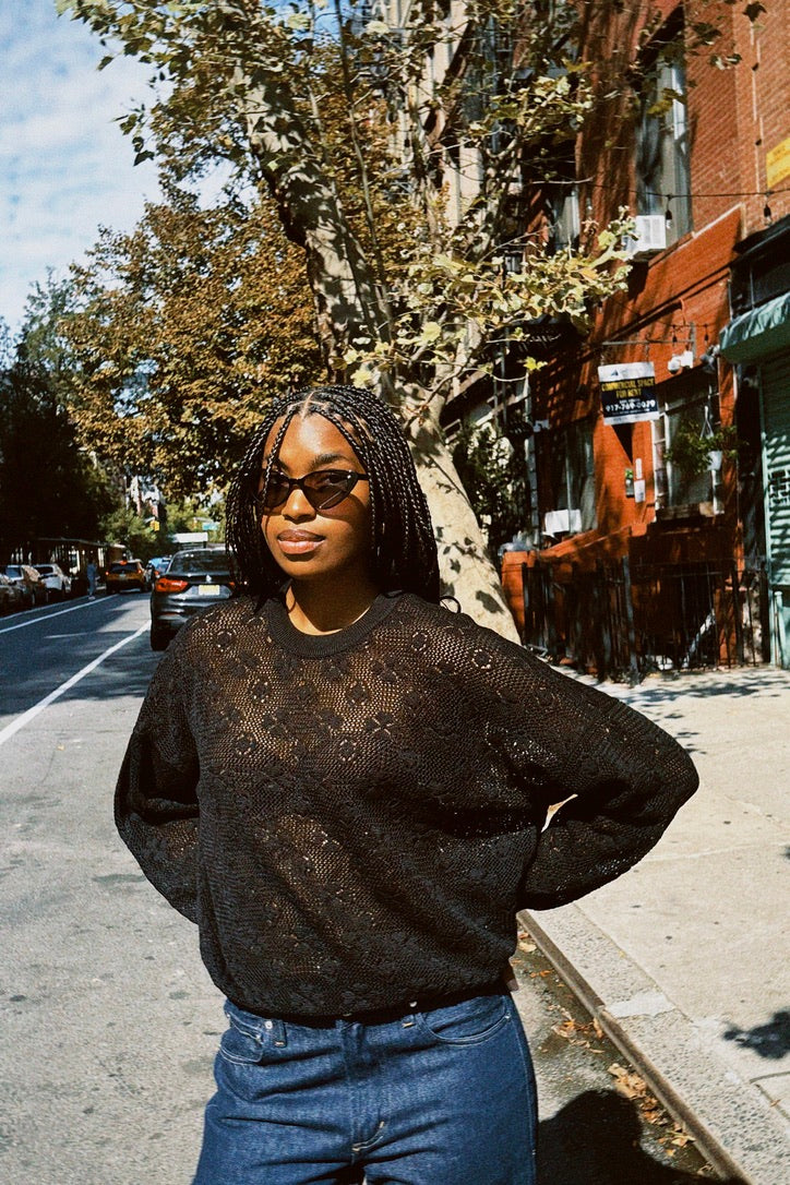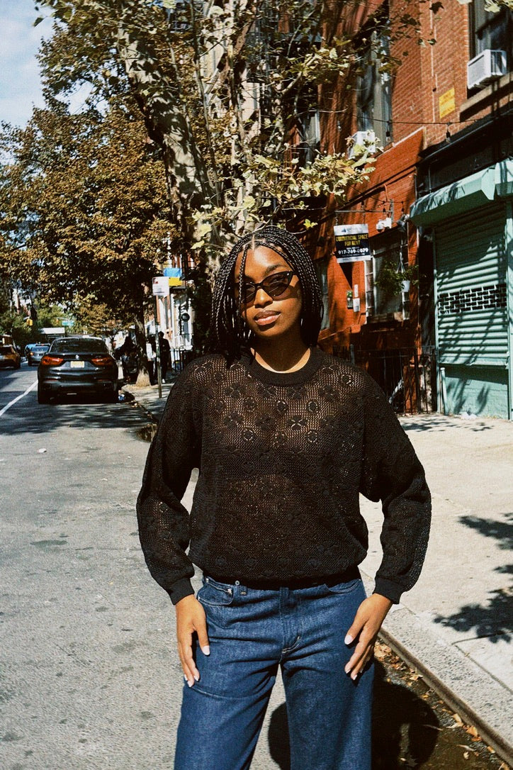📏 Peyton is wearing size S. This sweater runs true to size, with an oversized fit.
