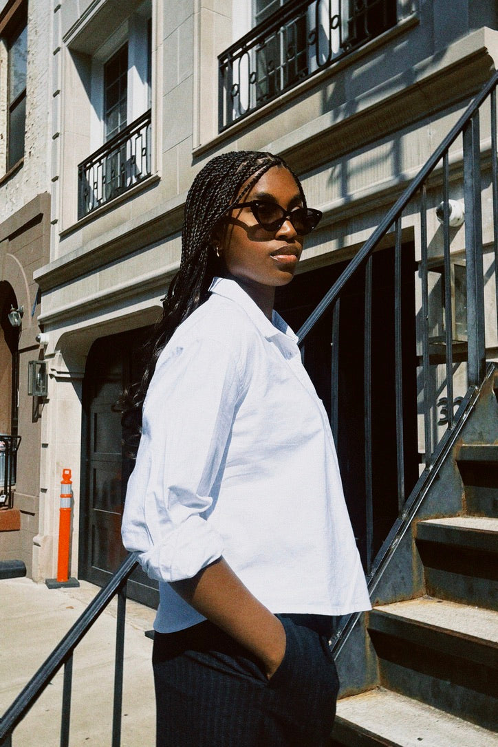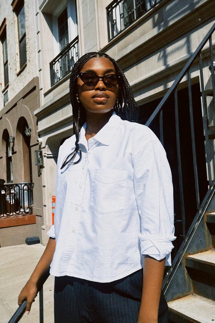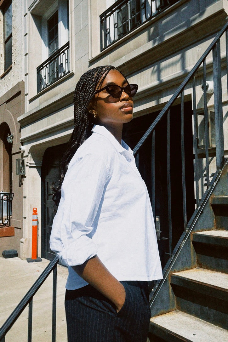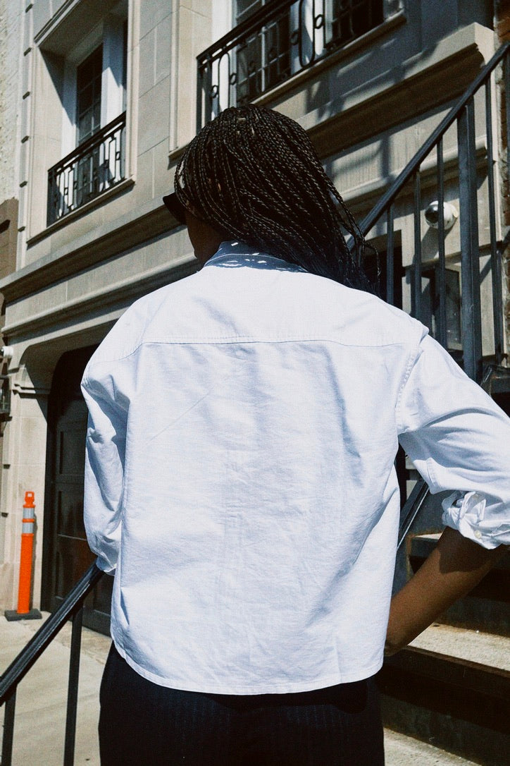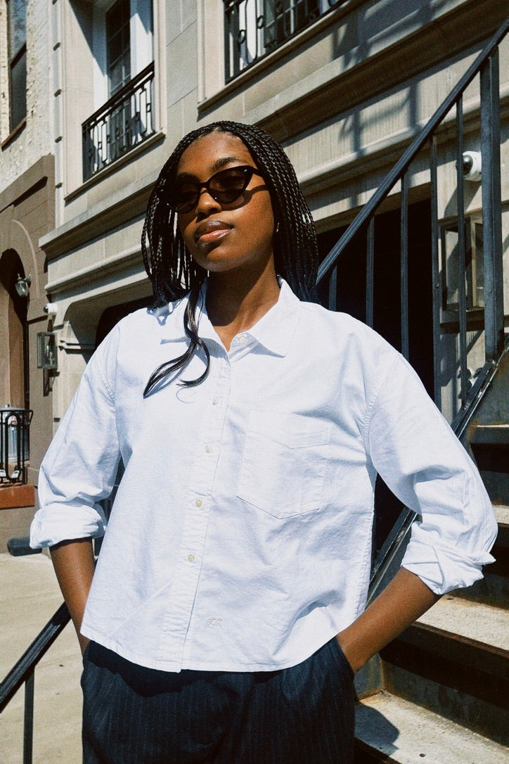 The Cropped Oxford Shirt takes its cues from classic shirting, with a boxy, cropped silhouette. Cut from structured cotton oxford, it features