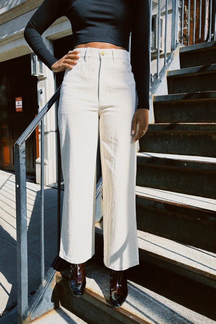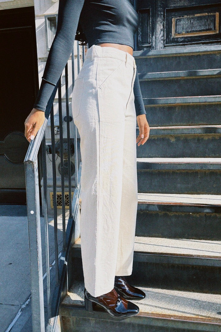 Looking for perfection? The Painter Pant has a high waist with elastic in the back for comfort, a snug bottom with room for curves, and full straight legs that are slightly cropped. Come and get your perfect pants!