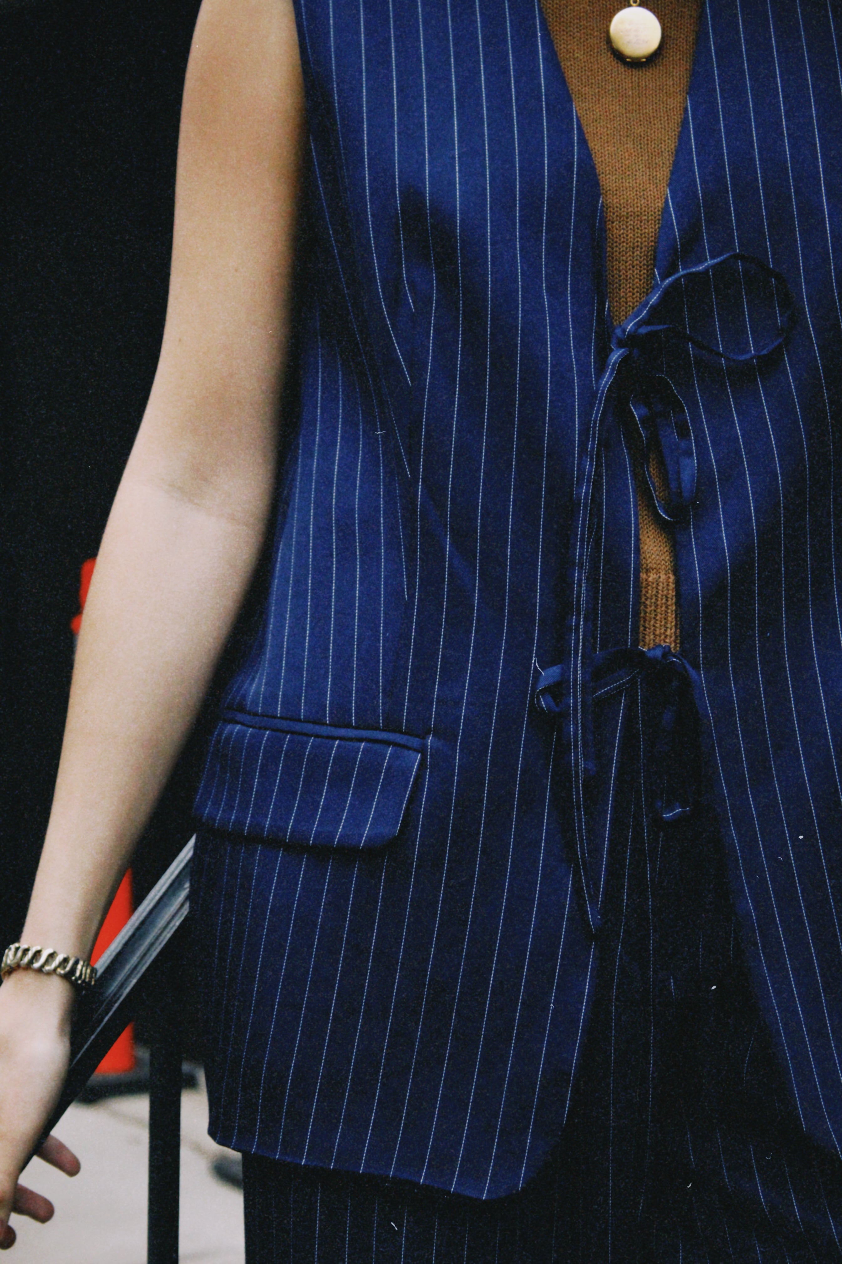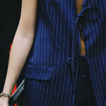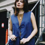 The piece that does double duty — structured like a blazer, effortless like a vest. The Tyler Blazer Tie Vest is a sophisticated layering essential that balances polished and relaxed with a distinctly French ease. The deep bleu marine hue feels rich and versatile, while the tie detail adds a tailored charm that elevates any outfit instantly. Wear it open over a simple tee for a casually chic daytime look, or cinch the tie for a more defined, dressed-up silhouette.
