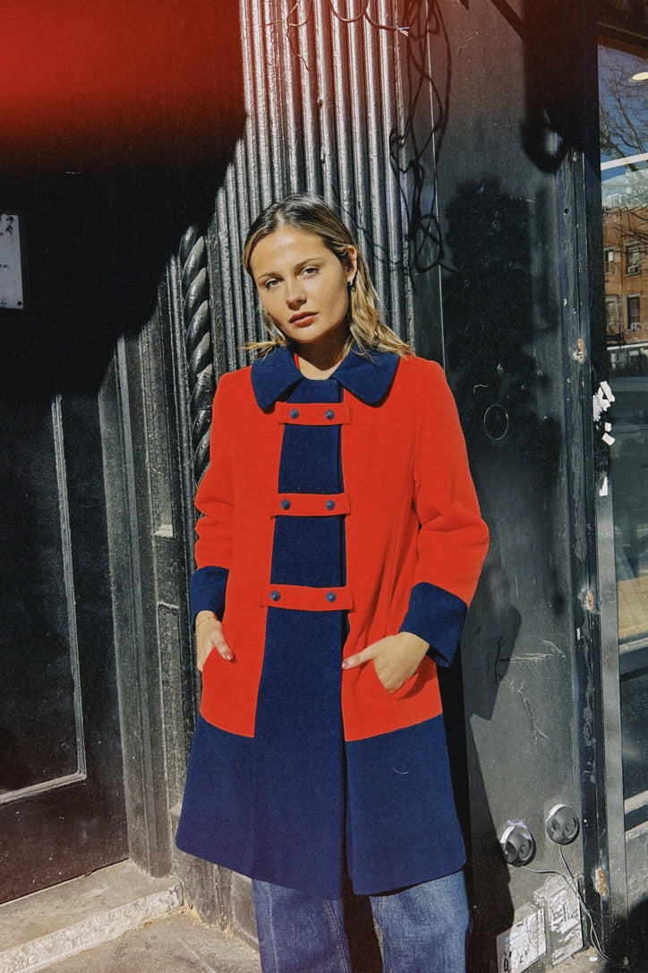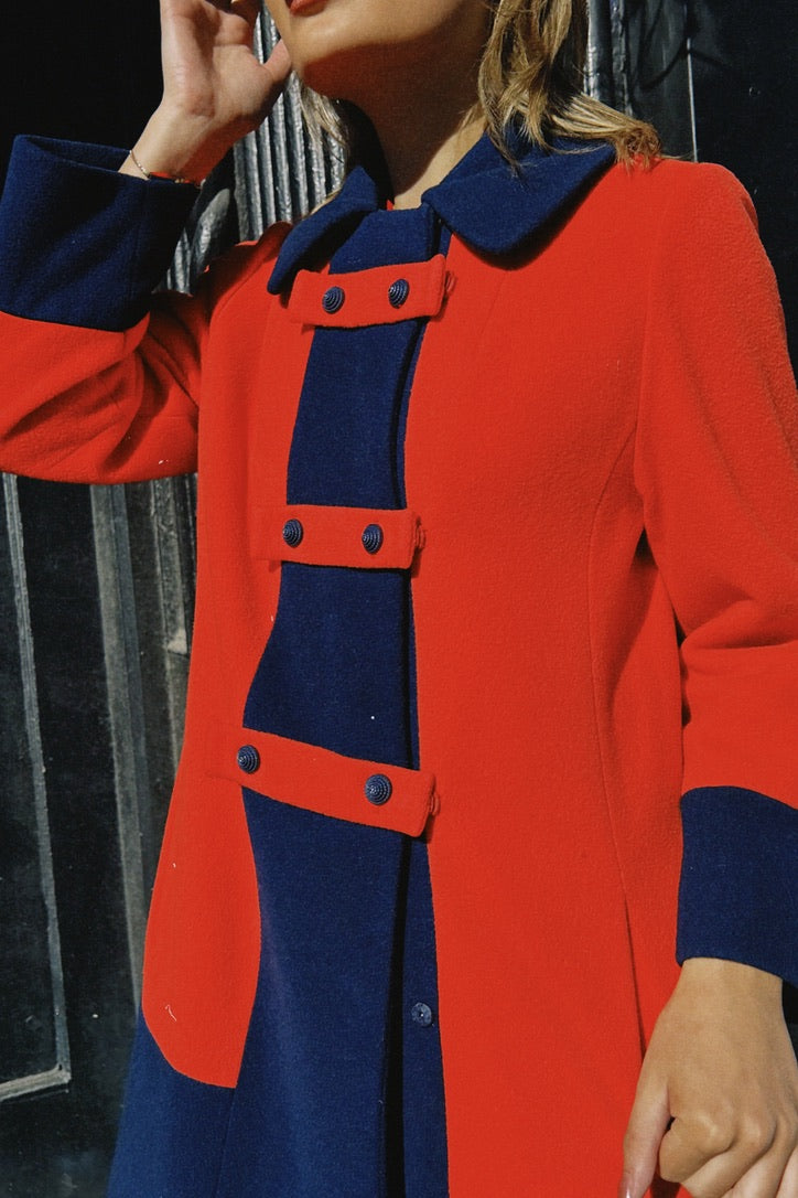 VINTAGE 60'S BRIGHT RED & BLUE MOD COAT