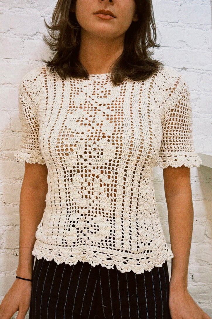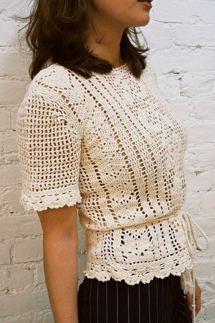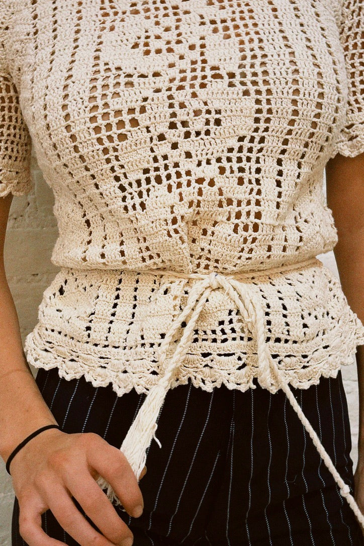 A gorgeous cream crochet top, perfect for layering into spring and summer. Tie belt fully detachable.
