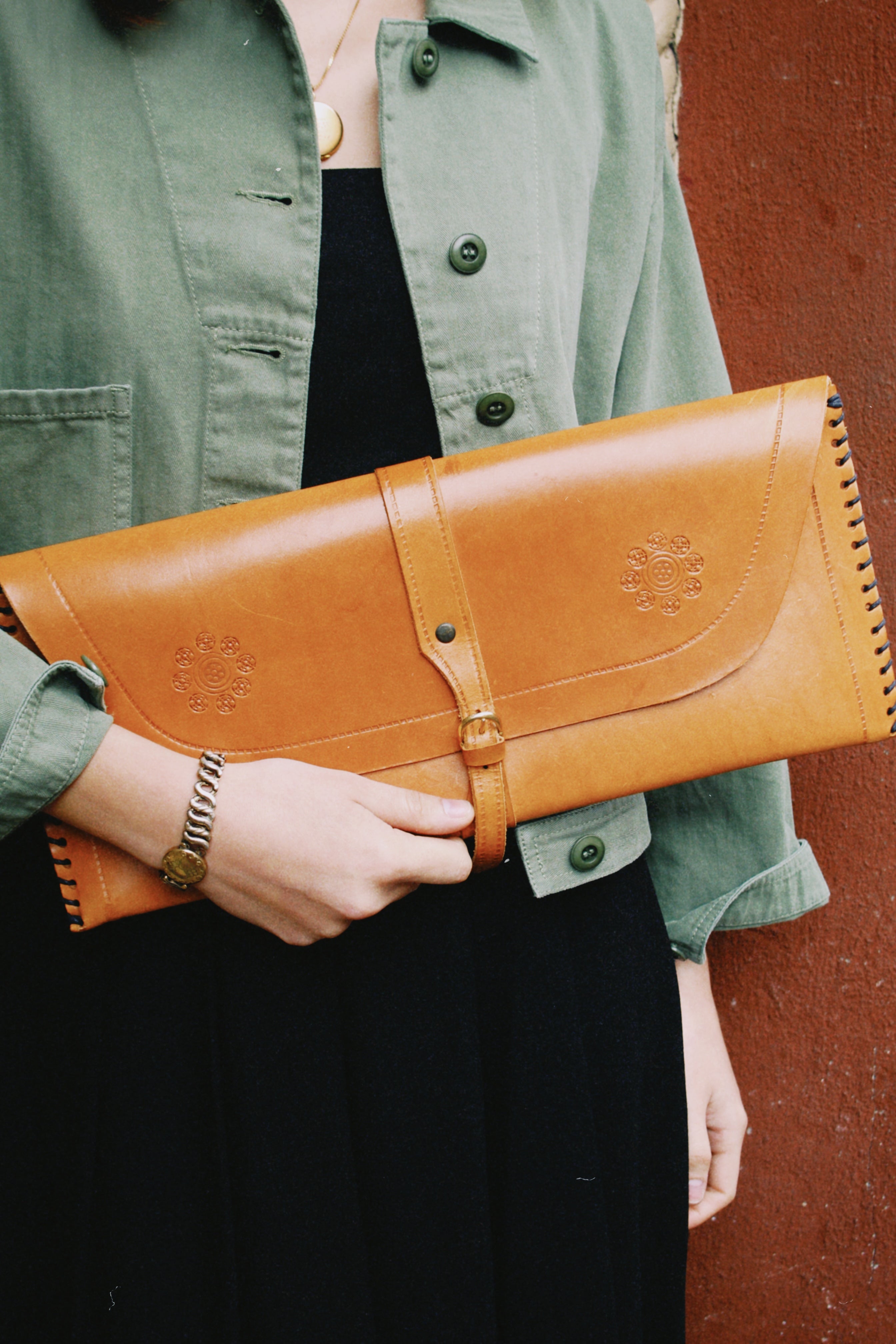 They don't make them like this anymore — and that's exactly the point. This Vintage 70's Tooled Leather Clutch is a one-of-a-kind piece of wearable history, handcrafted with the intricate tooled detailing that defined the bohemian spirit of the era. The rich texture and artisanal craftsmanship give it a warmth and character that no modern bag can replicate. Carry it to a summer market, a rooftop dinner, or anywhere you want your accessories to do the talking.