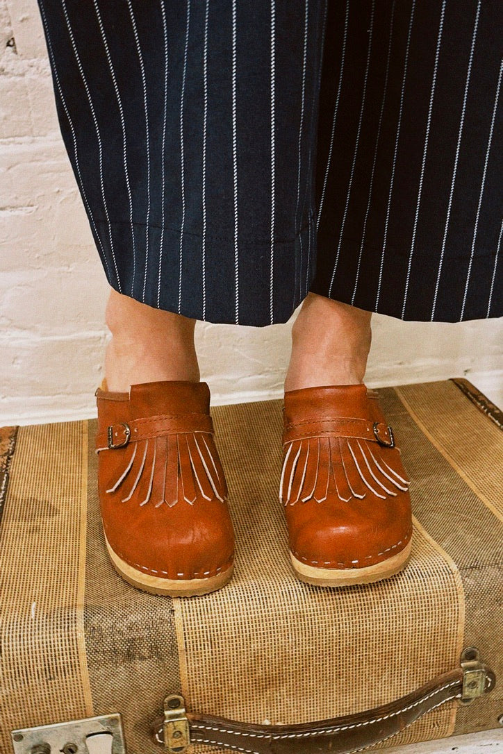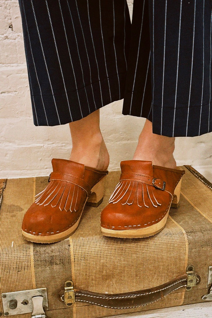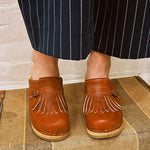 In perfect vintage condition, size 7 leather and wooden clogs.
