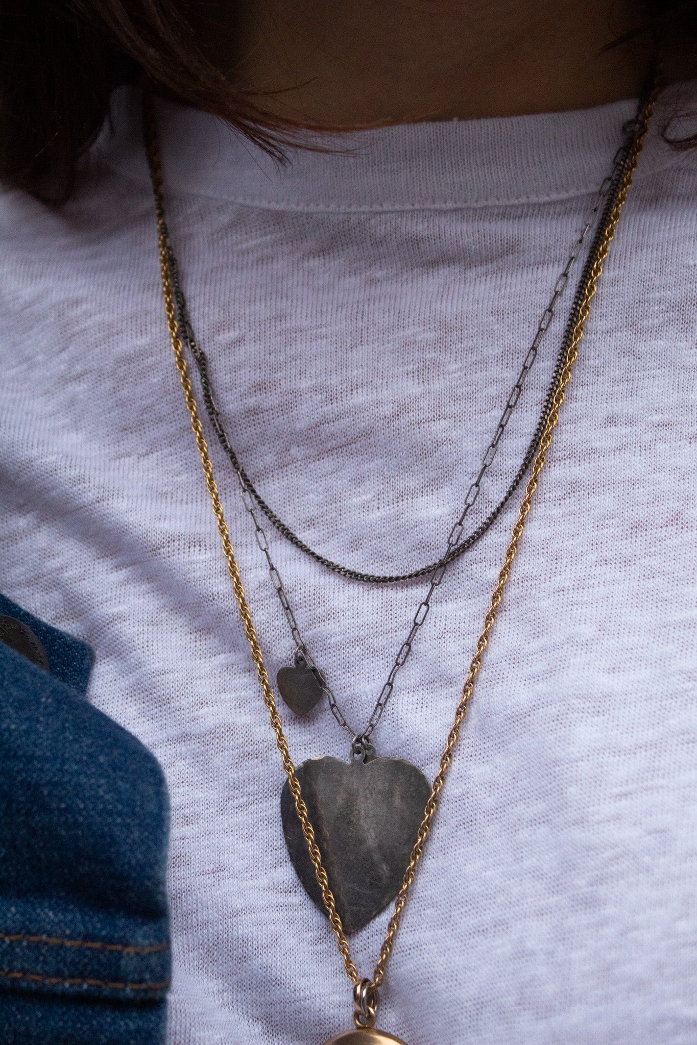 Add a touch of vintage sophistication to your jewelry collection with this stunning oxidized sterling silver necklace. The darkened patina creates a beautifully aged, antique aesthetic that brings depth and character to the sterling silver, making this piece a true statement of timeless elegance.