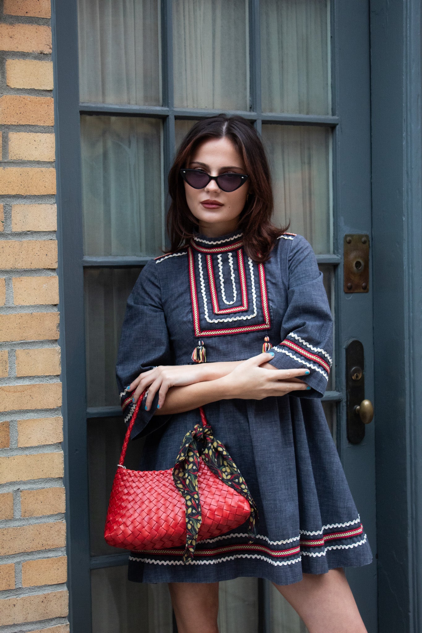 Style this sweet mini dress with ankle boots and a denim jacket for a casual daytime look, or dress it up with heels and vintage accessories for a night out. The timeless babydoll silhouette flatters every figure while the rick rack trim adds that special vintage touch that makes this piece truly special.